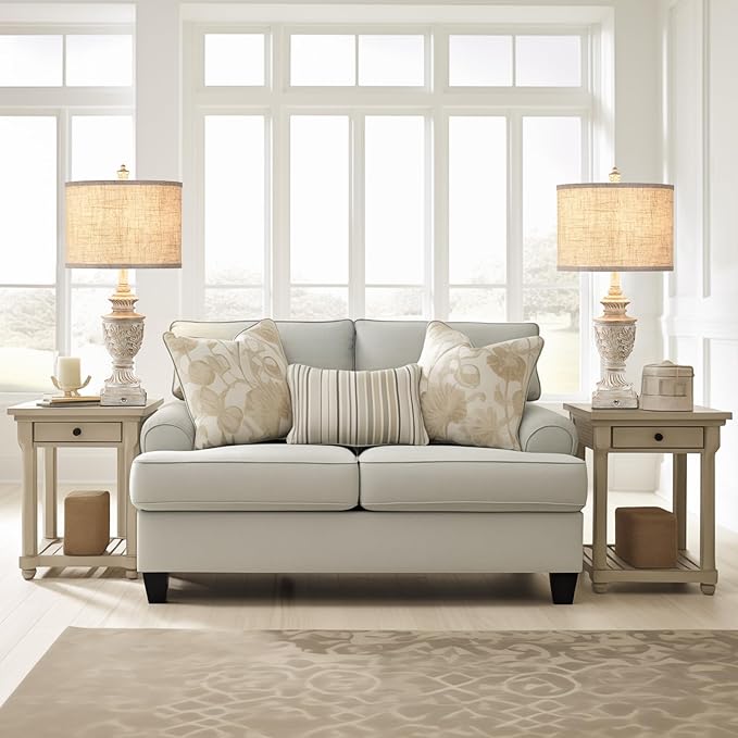 - 【RETRO FARMHOUSE RUSTIC TABLE LAMPS SET OF 2】This living room lamps set of 2 is hand-crafted oak's leafwork texture from vintage charm washed white resin, and this 27" tall table lamp is topped with an elegant oatmeal linen lampshade make the light bright enough without glare, which can effectively relieve eye fatigue and protect eyes. A decorative finial of farmhouse-style nightstand lamps set of 2 adds a aesthetic decor with beautiful soft ambient light to your living room, bedroom, office