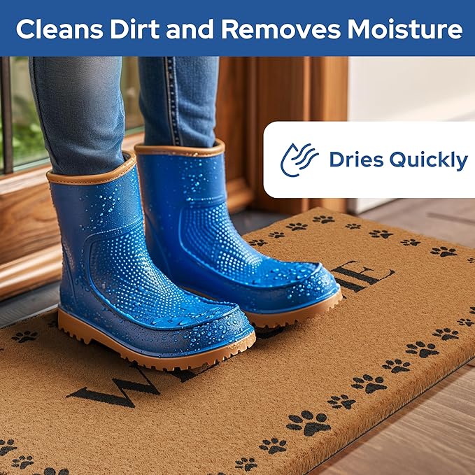 - Versatile - Our Paw Print Border welcome doormat outdoor entrances is not only perfect for patios, but also makes a great welcome mat for outdoor events or camping trips. Its durable construction is perfect for cleaning dirt and debris from shoes, and the all-weather coir fibers dry quickly. Use it to welcome guests to your home, cabin, or RV.