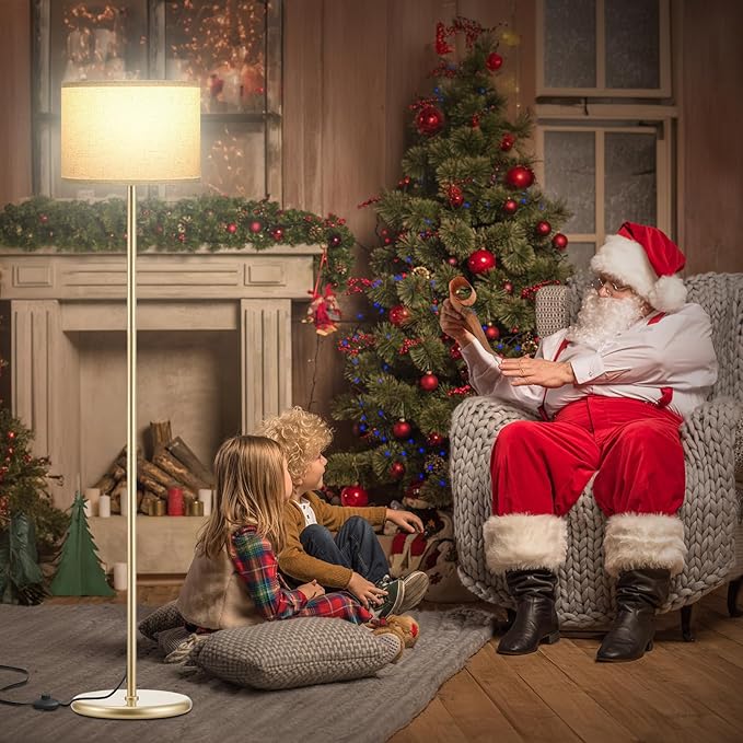 Ambimall 60'' Modern Floor Lamp with Shade, Tall Lamps for Living Room, Bedroom, Office, Dining Room, Beige Shade with Gold Pole(Without Bulb)