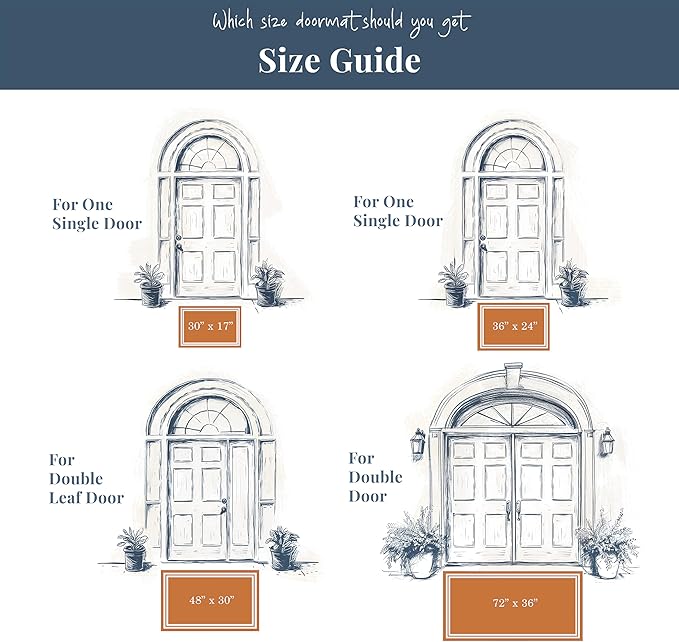 - The Perfect Size - Measuring 48 x 30 inches, our welcome mat outdoor entrance rug is just the right size for a large door entryway. It’s big enough to accommodate three people standing side by side, perfect for a front door entrance or oversized front door mat. It’s the ideal front door mat outside entrance rug for any home or office.