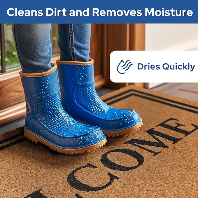 - Versatile - Our Welcome doormat outdoor entrances is not only perfect for patios, but also makes a great welcome mat for outdoor events or camping trips. Its durable construction is perfect for cleaning dirt and debris from shoes, and the all-weather coir fibers dry quickly. Use it to welcome guests to your home, cabin, or RV.