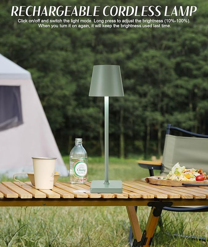 - Wide Use: Ideal for outdoor camping, family gatherings, dinner lighting. This cordless table light can also be placed anywhere, bedroom, nightstand, study room, office, living room, dining table, coffee bar, hotel room, outdoor, and so on