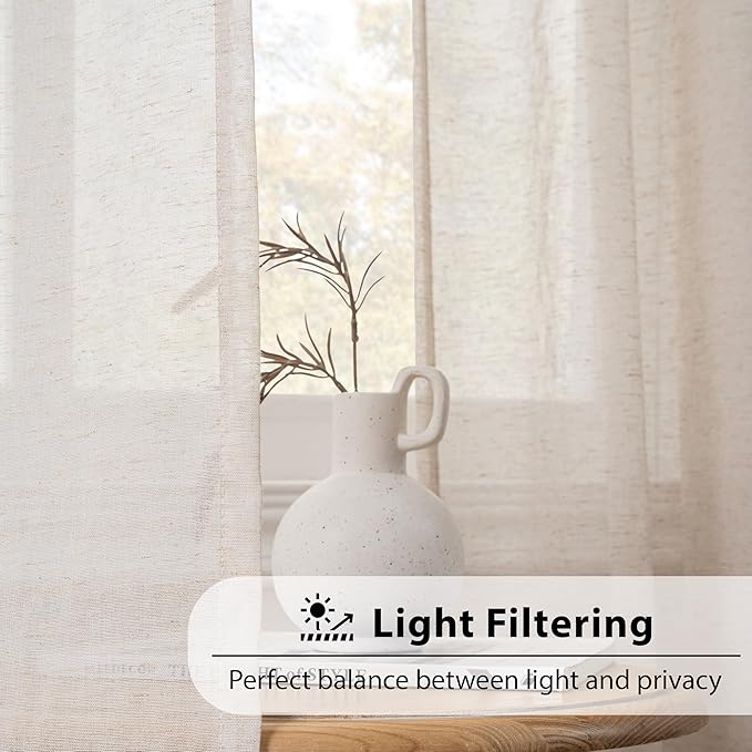 - Beauty Meets Simplicity: Made of lightweight flax linen fabric in soft pleats, these sheer curtains create a perfect balance between softness and substance in their simple way. They provide sufficient privacy from outsiders while inviting Taupe light in and keeping inside bright