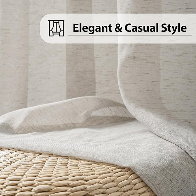 - Linen Blend Sheer Curtains: Add soft texture and a classic look to your home with FMFUNCTEX flax linen curtains. Package includes 2 panels 52 inch wide by 96 inches long each, 104 by 96 combined. With a soft, these drapes bring both casual warmth and a refined style to the room