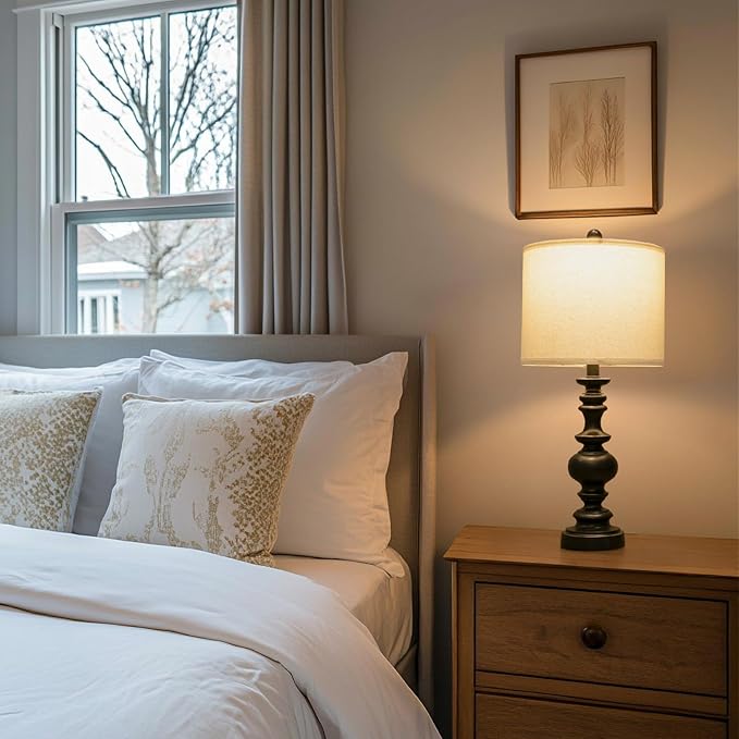 - 【Easy Rotary Switch Control】The convenient Rotary Switch allows for easy on/off control, putting the perfect ambiance at your fingertips. No complicated settings or buttons – just pure, simple functionality. Paired with a linen shade that diffuses light beautifully, it creates a warm, inviting glow, perfect for unwinding after a long day.