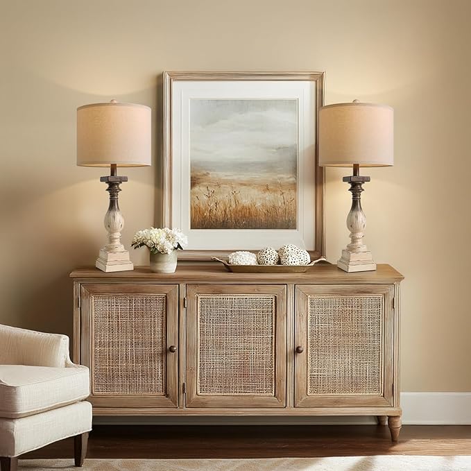 - 【Timeless Design & Versatile Use】BOBOMOMO 27" farmhouse table lamps boast a beautiful brown-to-beige ombre effect, infusing farmhouse style with a touch of modern elegance. The durable resin material ensures they'll stand the test of time, and the linen lampshades offer cozy ambiance, perfect for living rooms, bedrooms, entryway, or offices.