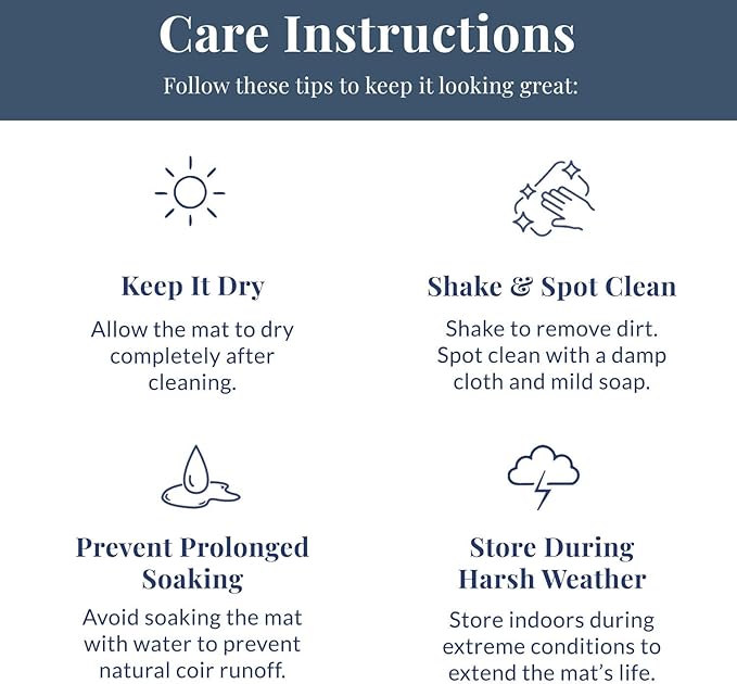 - Made of Durable Coir - Our doormats are made of 100% coconut coir fibers, one of the strongest and most durable natural fibers on earth. The high-quality coir used in its construction ensures that it will maintain its shape and appearance, even with heavy use. Please note that light shedding may occur, as is common with all natural coir mats. Additionally, avoid completely soaking mat with water as this could lead to natural coir runoff.