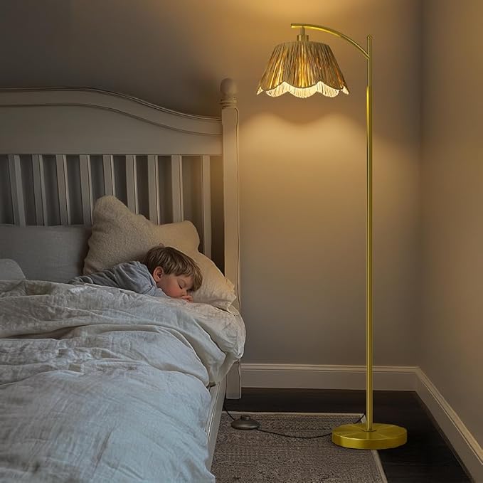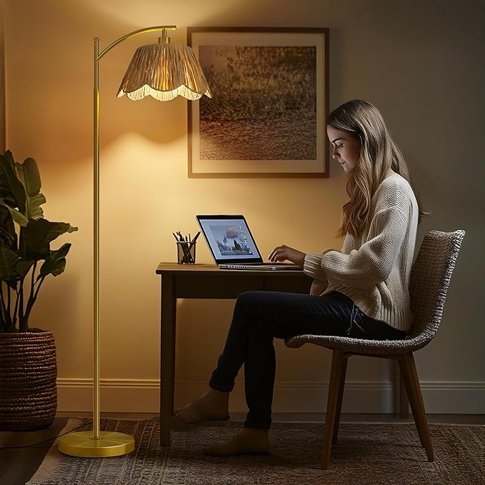 - Bohemian style to your home decor-This boho floor lamp boasts a handwoven rattan shade that enhances your home with natural charm and texture. The gold metal pole and base provide a sleek, modern contrast, making it a perfect blend of rustic charm and contemporary style. Ideal for living rooms, bedrooms, or offices, this lamp enhances any space with its timeless design.