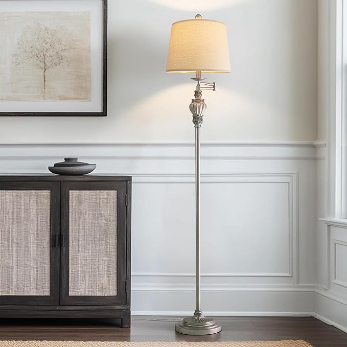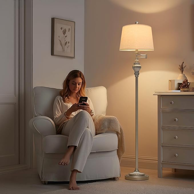 - Practical 350° Adjustable Swing Arm: The farmhouse floor lamp for bedroom allowing you to easily direct the light where you need it most. This bedside lamp provides flexibility and convenience in illuminating different areas of your room