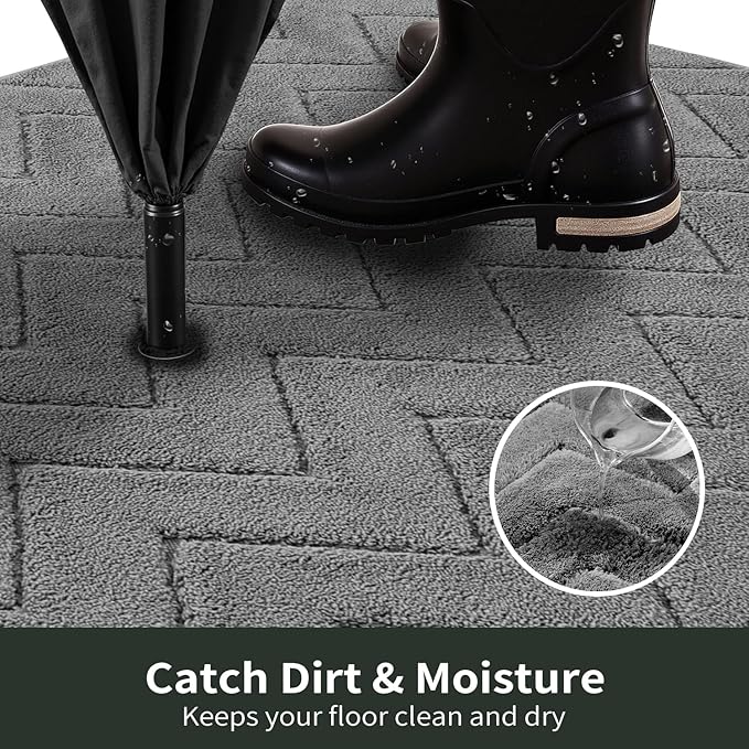 - Catch Dirt & Moisture: Made of soft and absorbent fiber, it effectively trap moisture and debris from wet shoes or muddy paws, keeping your floors clean dry, and safe—especially on rainy or snowy days. We recommend choosing the largest mat that fits your space