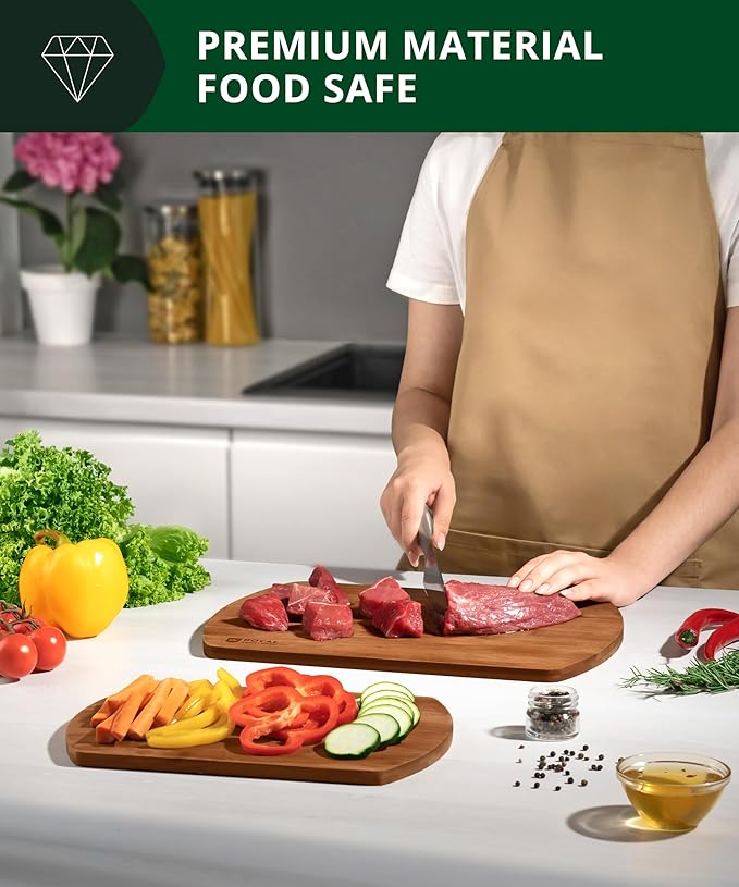 ROYAL CRAFT WOOD Cutting Boards for Kitchen - Wooden Cutting Board for Meal Prep & Serving, Non-Toxic Bamboo Chopping Board, Carbonized Bamboo Durable Charcuterie & Lightweight Serving Boards (2 pcs)