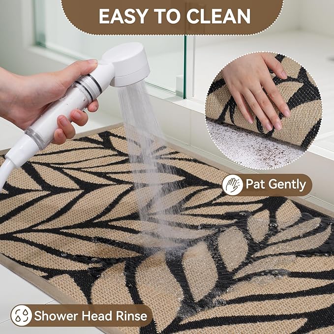 - 【Rugged and Sturdy 】: The surface of this QiCaiJia water resistant outdoor mat is made of high-quality woven flax, which is designed to be sturdy, strong and flexible.